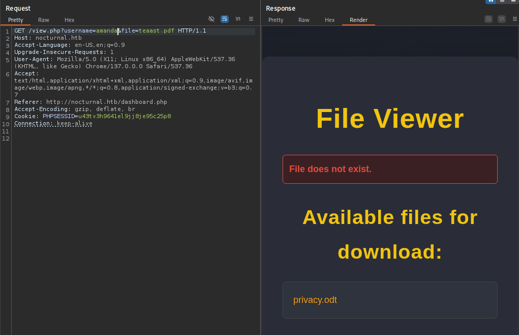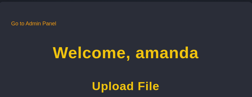 Entonces, si conocemos mas o menos que valida primero la existencia de un usuario y luego enumera los archivos guardados por el mismo, nos quedara hacer un web fuzzing. Y como podemos ver, acabamos de encontrar distintos usuarios, por lo que queda enumerar que encontramos en sus archivos subidos. Si vemos el usuario amanda, encontraremos un archivo llamado privacy.odt, si descargamos este fichero, veremos un mensaje que dice: Entonces, si probamos las credenciales, podremos ingresar como amanda en el sistema web. Vemos que amanda tiene permisos de administrador, por lo que daremos un vistazo a eso. Veremos que podemos ver la estructura de la web, algo curioso es que se nos permite crear backups, y no solo eso, podremos dar un vistazo al codigo fuente. Por lo que encontraremos cosas interesantes como: