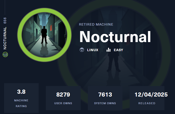 Nocturnal es una máquina Linux de dificultad EASY centrada en el análisis de una aplicación web en PHP, donde se exploran fallos de acceso, análisis de código y explotación de software vulnerable. Ideal para practicar técnicas realistas de enumeración, obtención de credenciales y escalada de privilegios.
