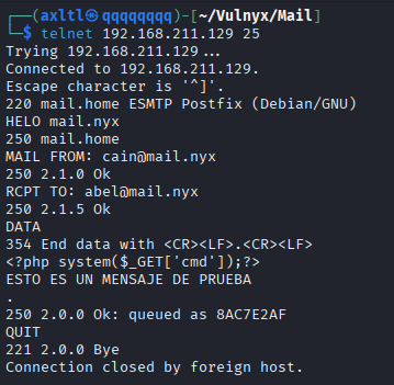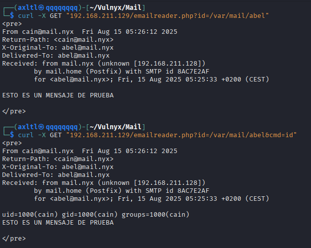 Si nos ha salido todo conforme, nos quedara apuntar a la ruta del que recibe el mensaje, en este caso abel -> /var/mail/abel